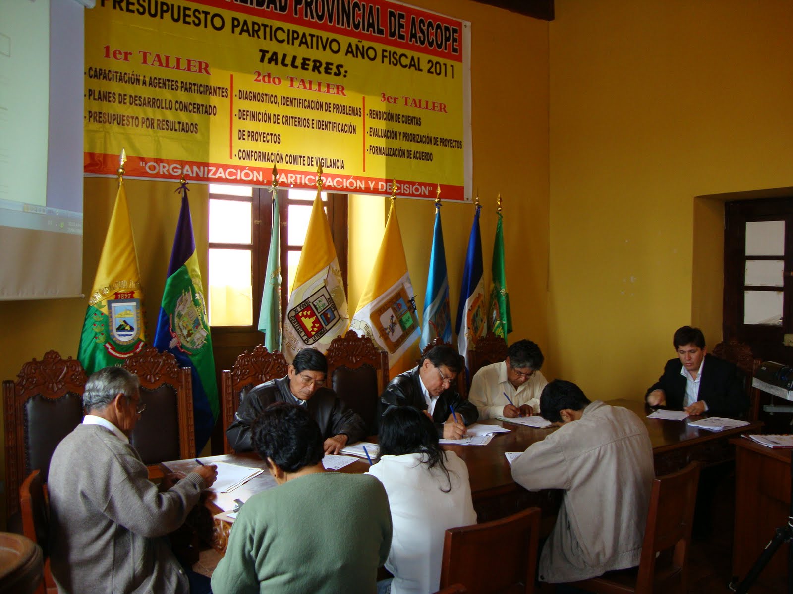 La Municipalidad Provincial de Ascope conjuntamente con el Concejo de Coordinación Local, viene realizando el Presupuesto Participativo 2010 con el eslogan “organización, participación y decisión”, teniendo la participación correcta de la población, organizaciones públicas y privadas debidamente organizadas, que ejecutan acciones en la provincia, cooperación técnica y autoridades elegidas democráticamente.